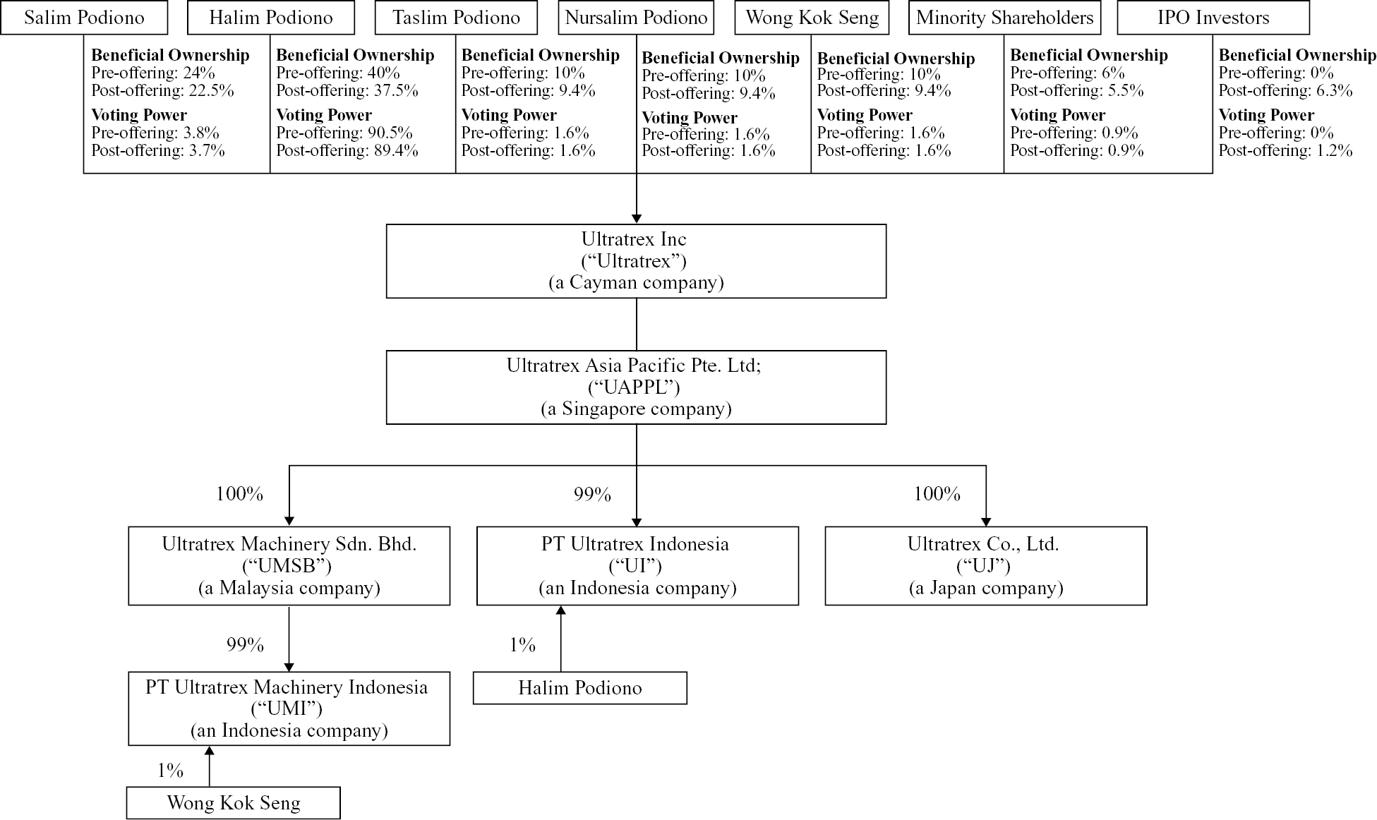 Throughout this prospectus, unless the context indicates otherwise, any references to “UTX,” “the Company,” or “our Company” are to Ultratrex Inc., a Cayman Islands holding company.